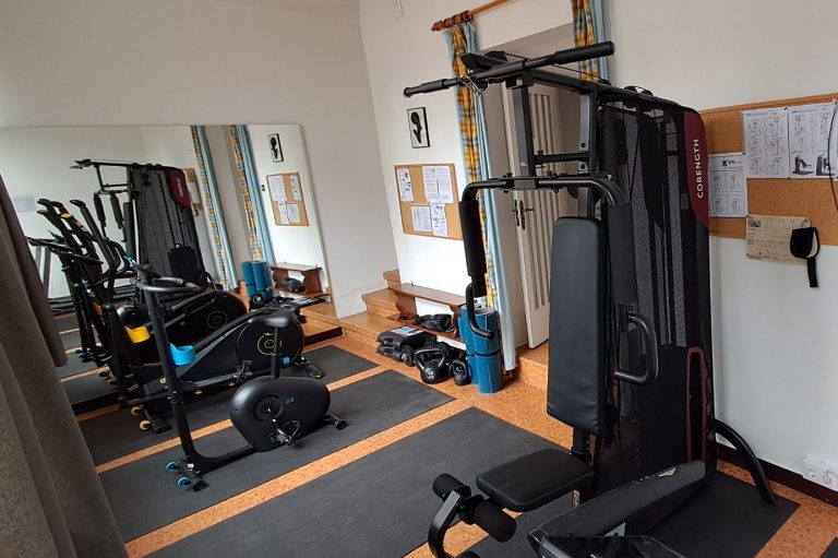Abierto 24/7 y equipado con cinta de correr, elíptica, bici estática, máquina de musculación, mancuernas,…